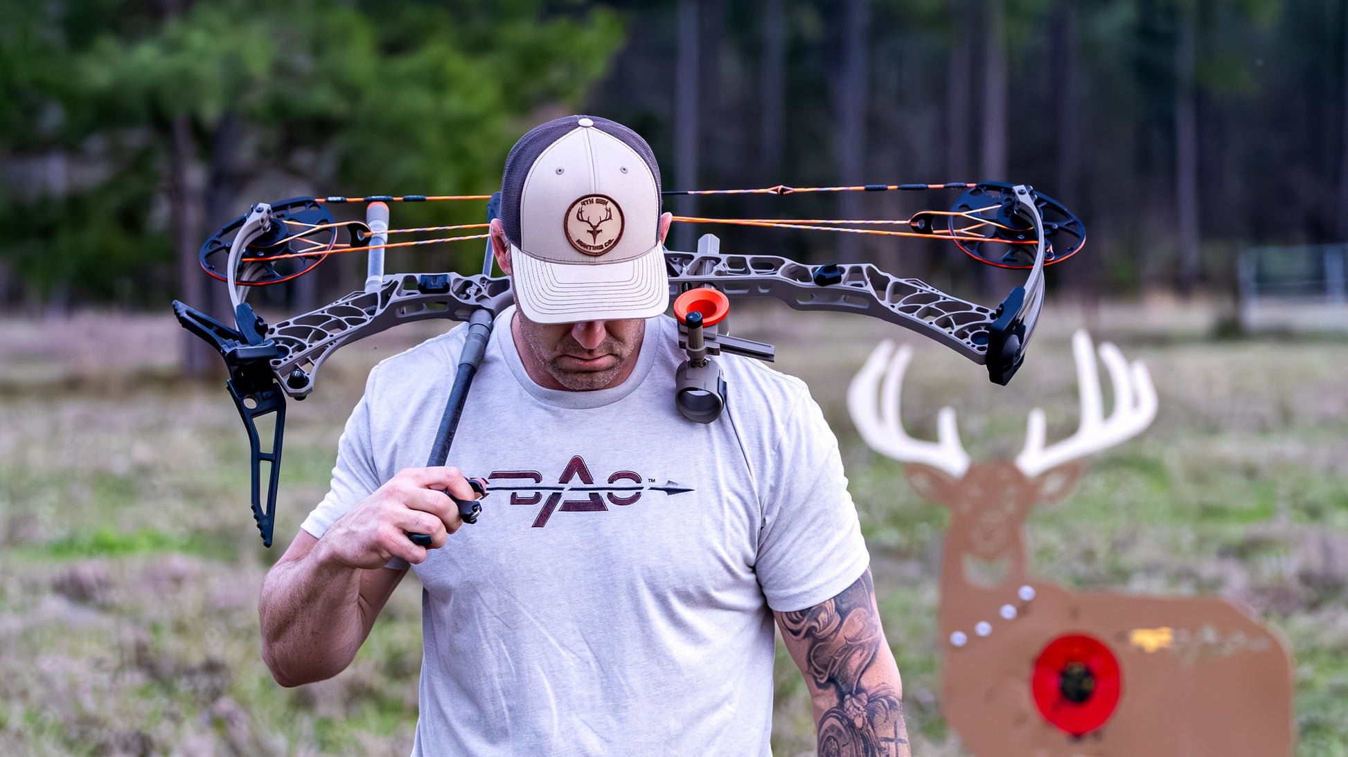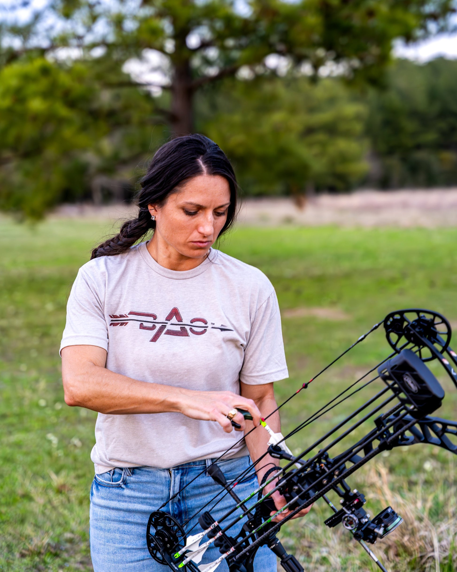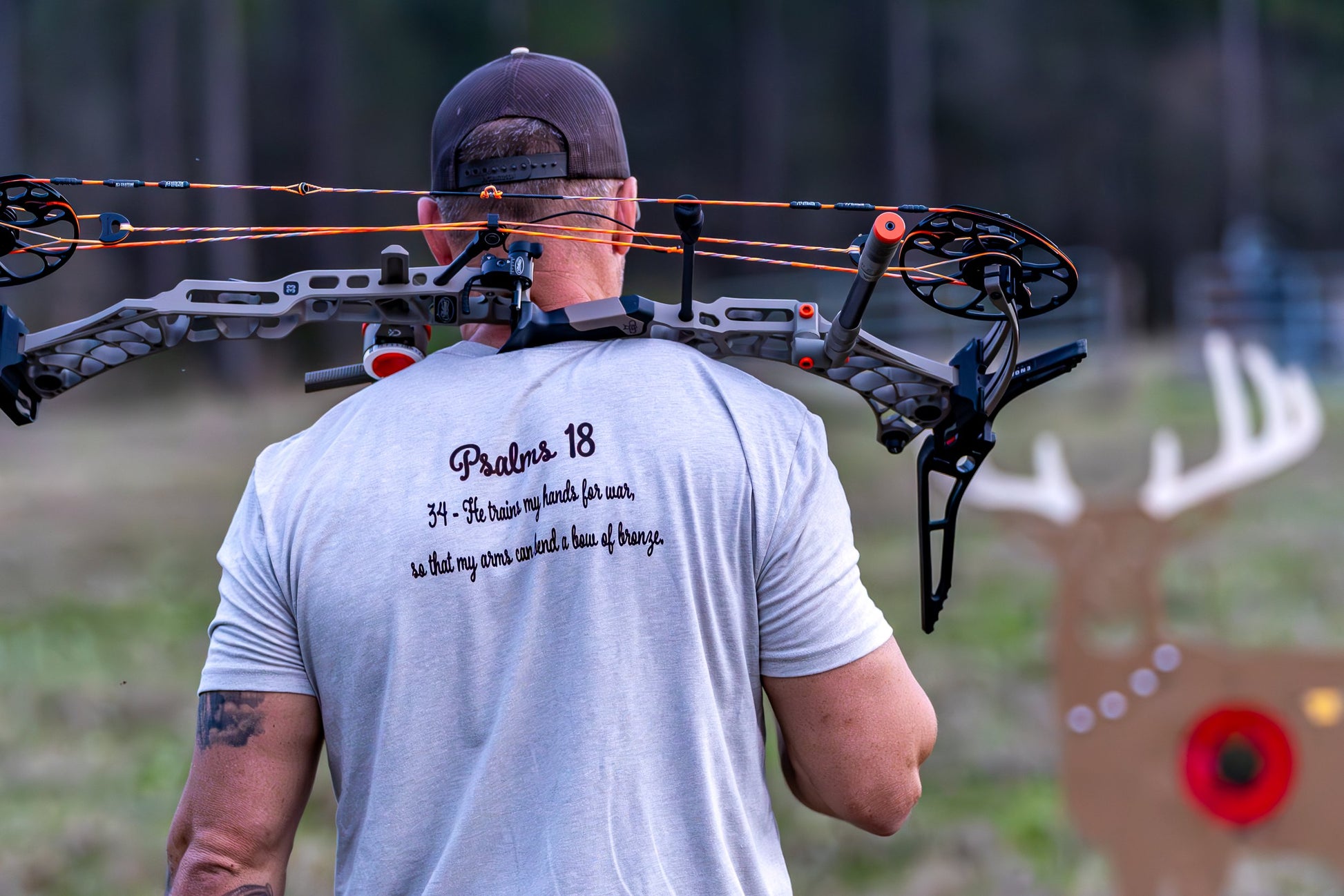 BAO silk grey t-shirt with Psalms 18:34 "He trains my hands for war, so that my arms can bend a bow of bronze."